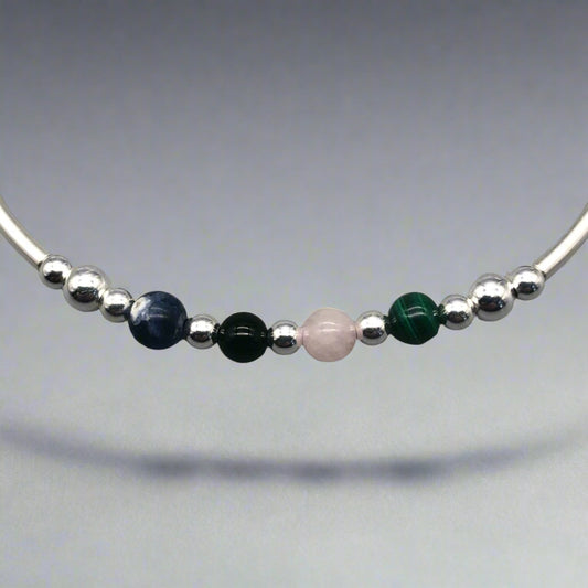 Anxiety support healing crystal sterling silver women's stacking charm bracelet