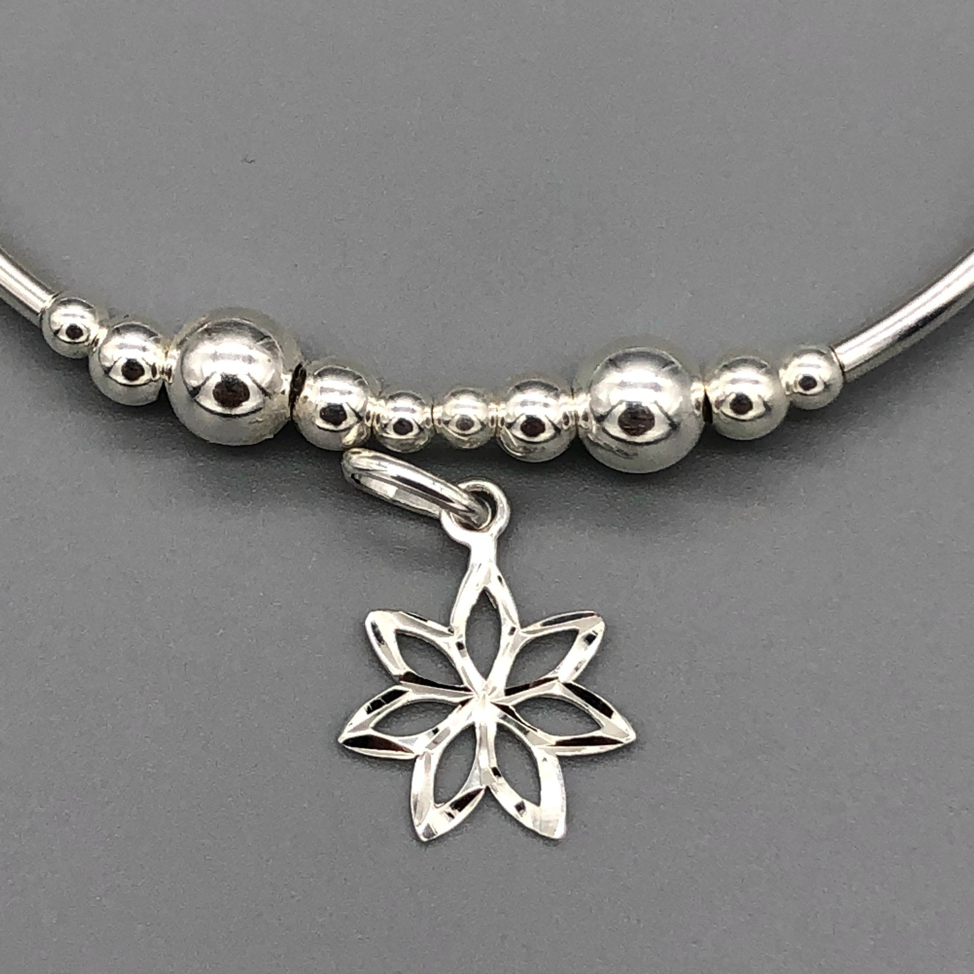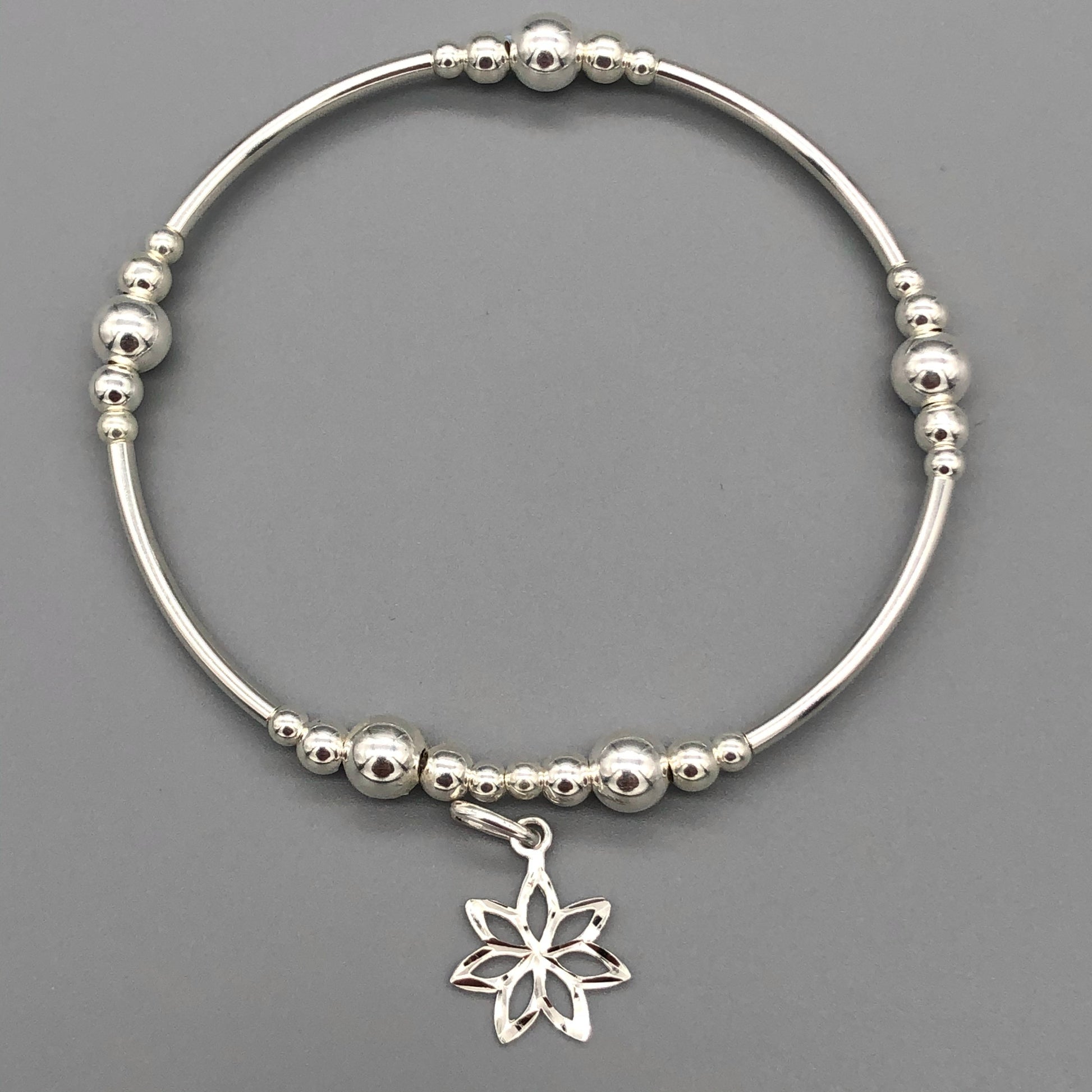 This charming bracelet is finished with a 925 sterling silver Lilly lotus flower Charm, a symbol of purity, enlightenment, self-regeneration and rebirth.