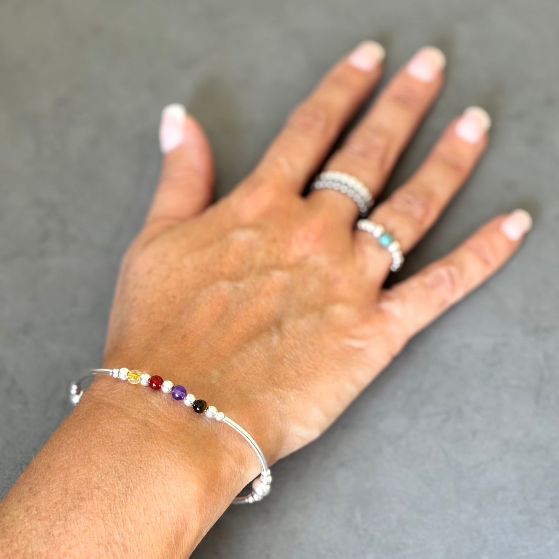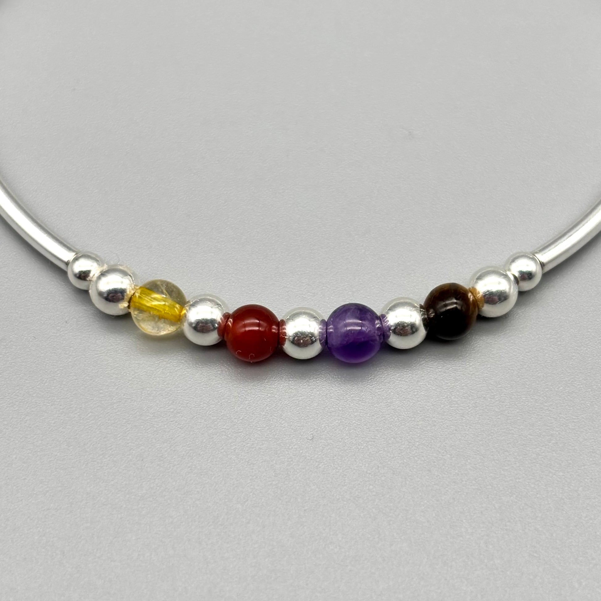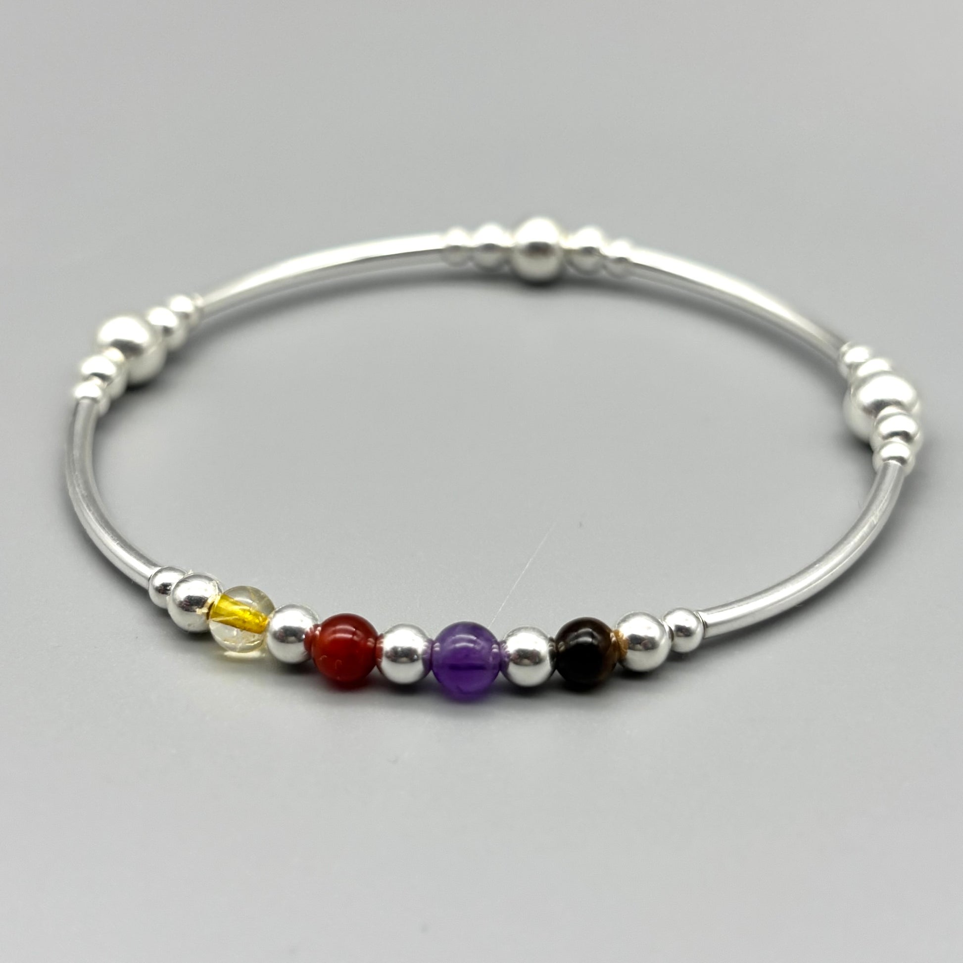 Virgo zodiac star sign women's healing crystal sterling silver stacking bracelet